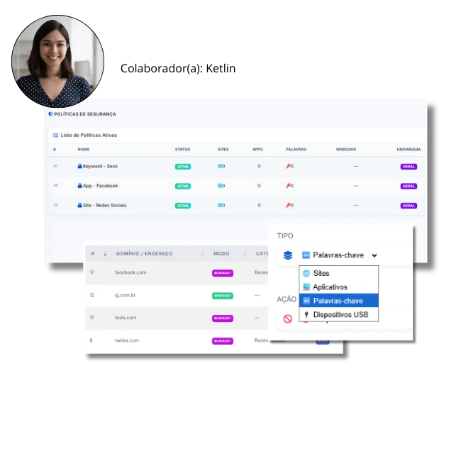 Com políticas bem definidas, sua empresa garante conformidade, evita vazamentos, reduz distrações e mantém todo o ambiente digital alinhado às regras corporativas.